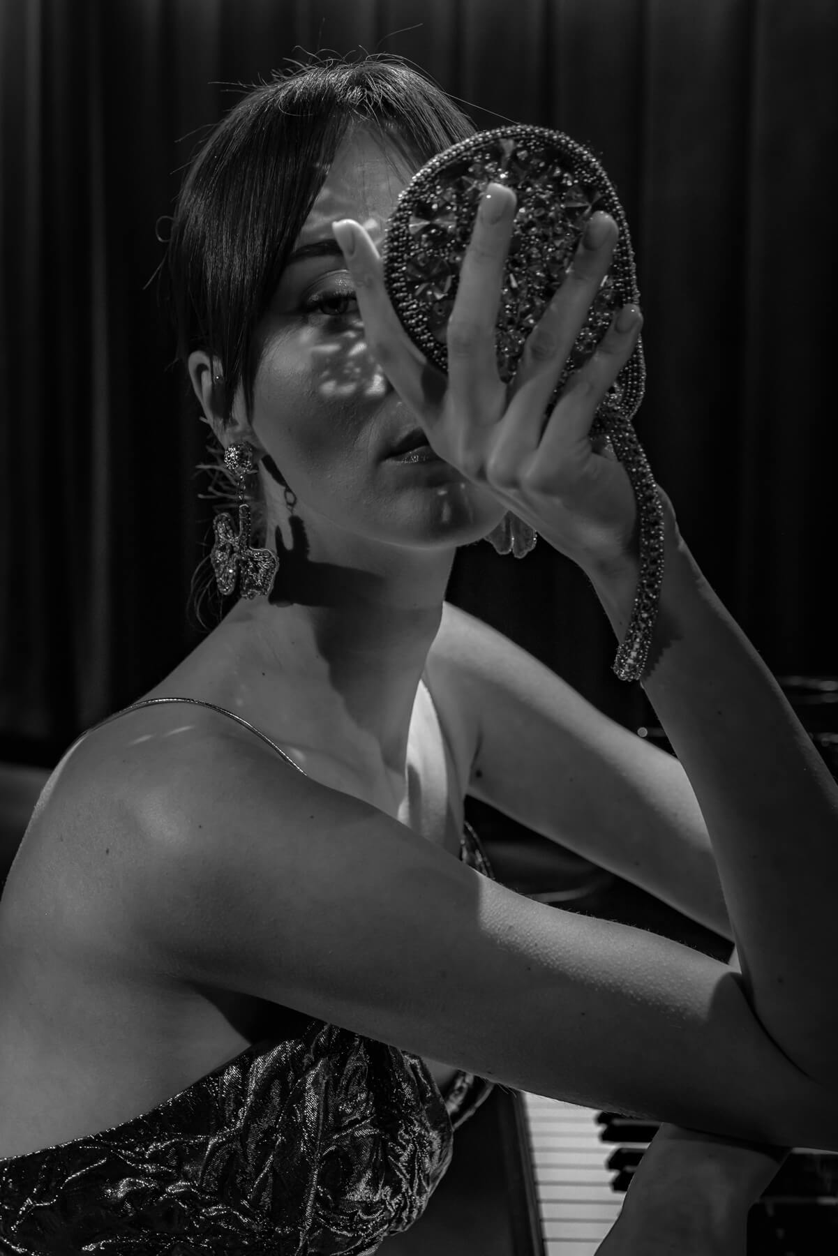 jewelry embedded into the fabric, lending a sense of